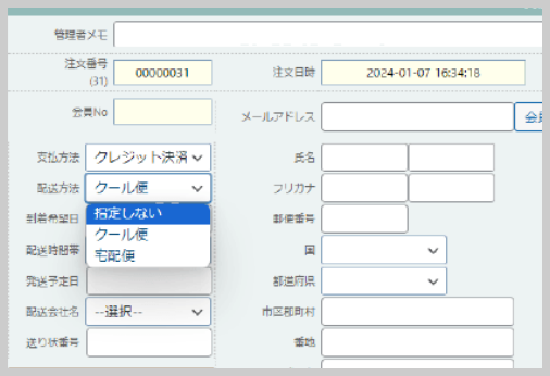 宅配方法を自由に作成できます。宅配業者を選択できるようにしたり、ポスト投函の指定も可能です。